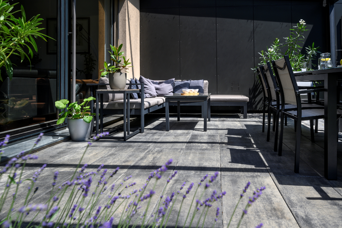 Při plánování se vyplatí myslet také na budoucí údržbu. Tu si bezpochyby ulehčíte výběrem dlažby s minimem spár. V tomto směru nešlápnete vedle s velkoformátovou skladebnou dlažbou VENEZIA, která svými rozměry, hladkým povrchem a rovnými hranami ideálně ladí s moderním pojetím stavby. Vyplatí se vybrat také dlažbu s dlouhodobou ochranou Clean Protect Plus. Nemusíte pak řešit pravidelnou impregnaci a k očištění ji stačí pouze omýt tlakovou vodou.