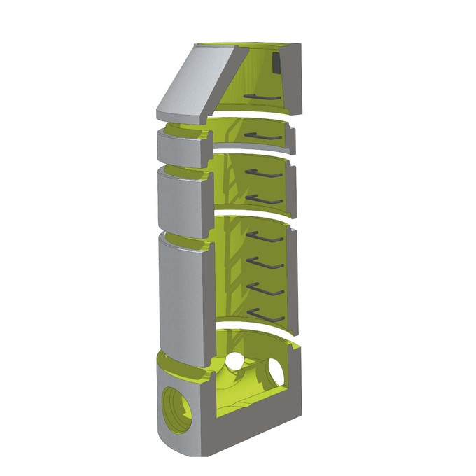 Polyuretanová výstelka STRATO je vyráběna vně formy bez jakýchkoli spojů a následně zalita přímo při výrobě betonového dílu. Tím se zcela eliminuje potřeba dodatečného lepení či spárování – a s tím spojená rizika degradace nebo nesprávného provedení. Výsledkem je dokonale kompaktní a odolný celek.