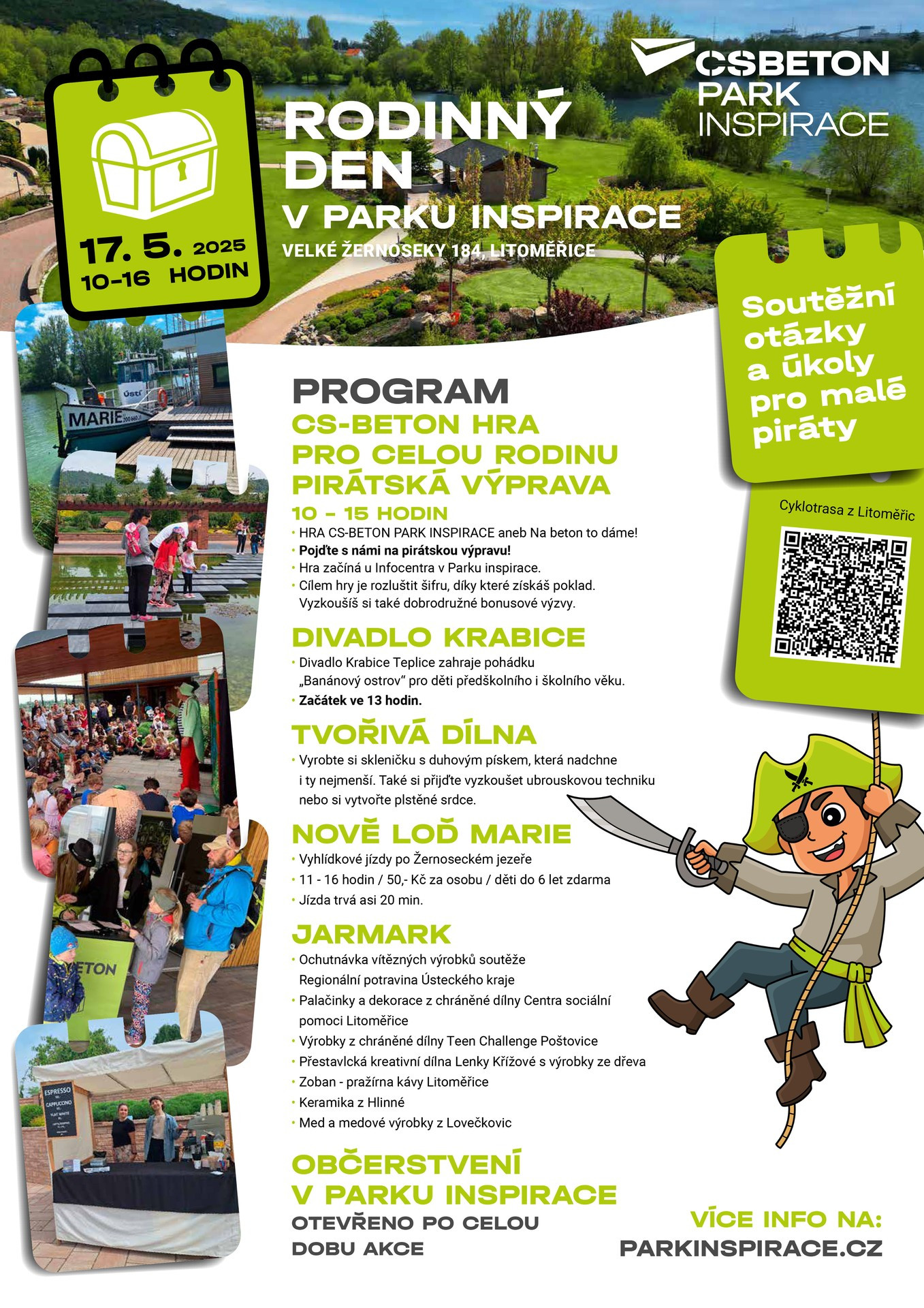CELOU SOBOTU 17.5 bude Park inspirace plný zábavy. Máme pro vás připravenou soutěž na téma Pirátská výprava, divadlo, tvořivou dílnu, jarmark s lokálními výrobci a také nové vyhlídkové plavby lodí na Píšťanském jezeře.