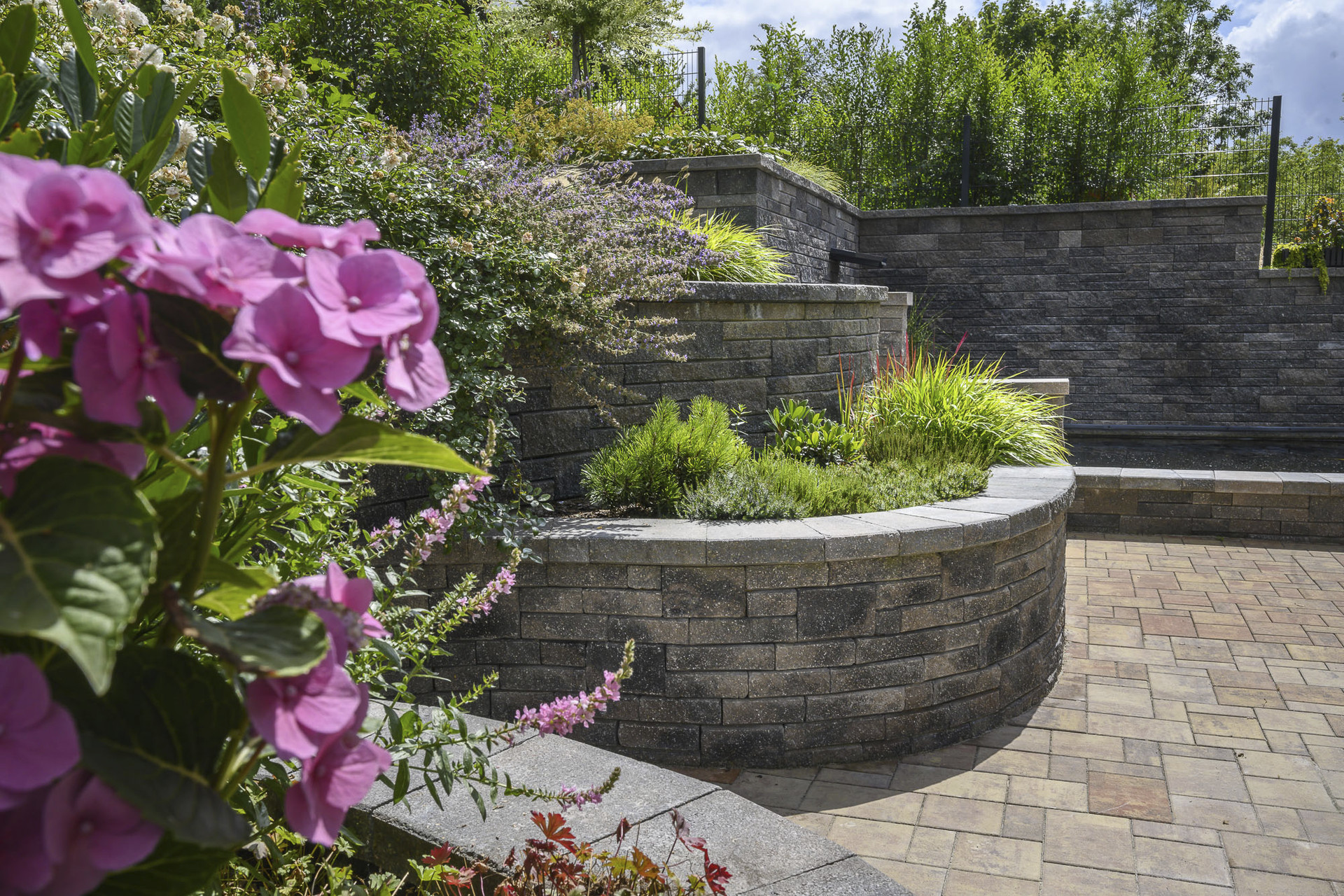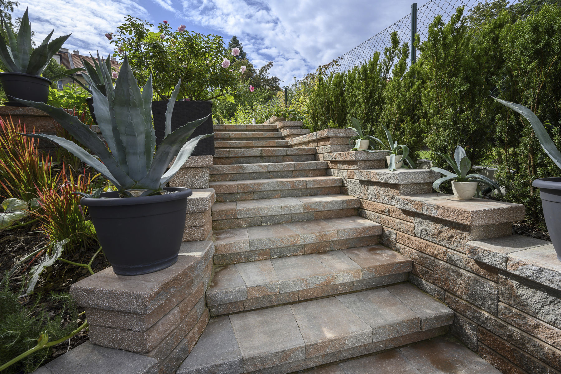 Systém betonových bloků, z kterých lze zděním na sucho stavět terasové opěrné zdi, okrasné gravitační stěny, schodišťové stupně i ploty....