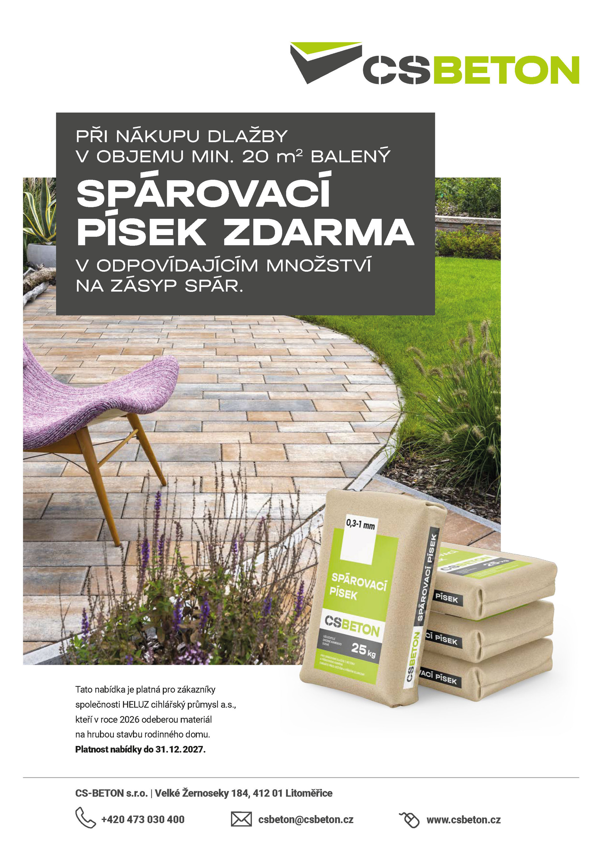 K výběru zároveň využijte naši akční nabídku - nakupte jakoukoliv dlažbu z našeho sortimentu v objemu min. 20 m2 a získáte balený spárovací písek zdarma v odpovídajícím množství na zásyp spár. Pro slovenský trh nabízíme vizualizaci v hodnotě 250 EUR zdarma při nákupu dlažby v min. objemu 50 m2. Akce platí do 31.12.2027.