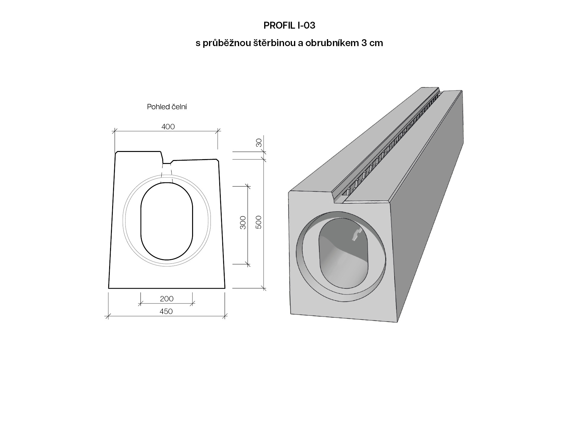 Profil I s obrubníkem 3 cm