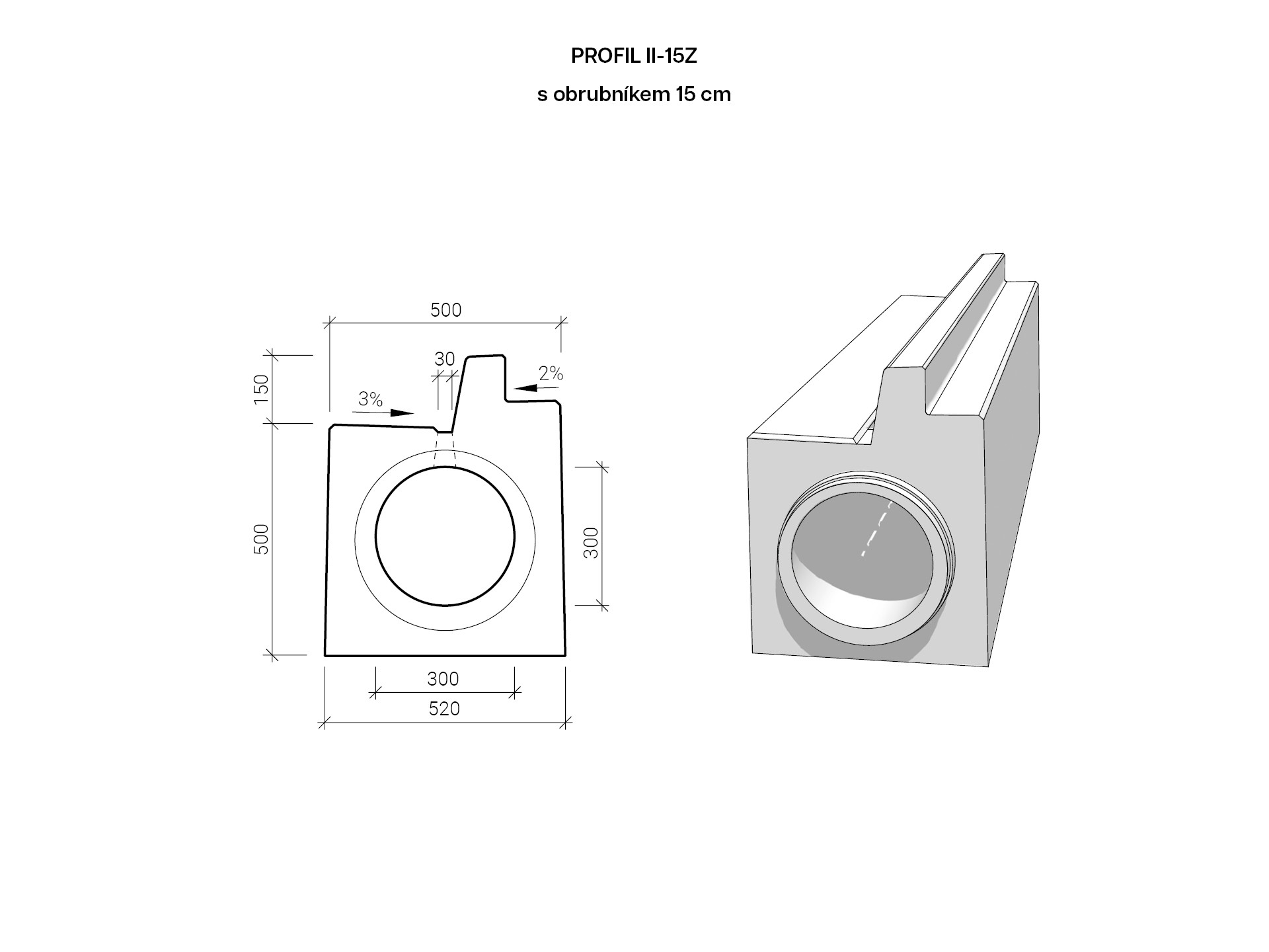 Profil II-15Z s průběžnou štěrbinou a obrubníkem výšky 15 cm vyrábíme pouze v provedení bez spádu dna. Tyto prvky jsou...