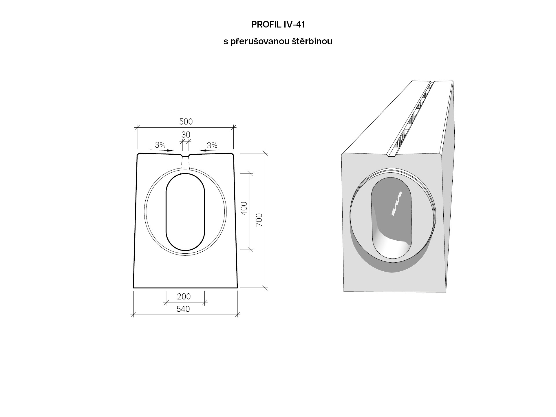 Profil IV s přerušovanou štěrbinou vyrábíme v provedení bez spádu dna i se spádem dna. Tyto vysokokapacitní prvky jsou dimenzovány...