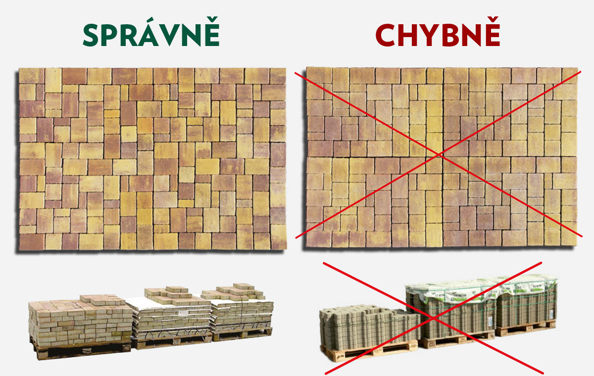 Tímto náhodným výběrem kamenů docílíte rovnoměrného položení kamenů světlejších a tmavších tak, aby plocha působila přirozeně.